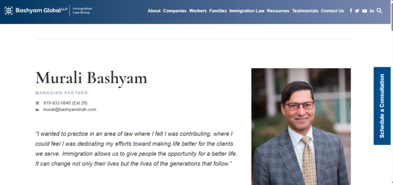Bashyam Shah is a premier, full-service immigration law firm in Raleigh with a stellar reputation for handling both business and family immigration matters with expertise and care. They serve a diverse clientele, from multinational corporations in the Research Triangle Park to families seeking to build their lives in North Carolina.