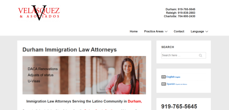 Velasquez & Associates is a cornerstone of the legal community for North Carolina’s vibrant Hispanic population. With offices in Durham and Raleigh, this fully bilingual firm is dedicated to providing compassionate and effective representation in family immigration, removal defense, and humanitarian cases.