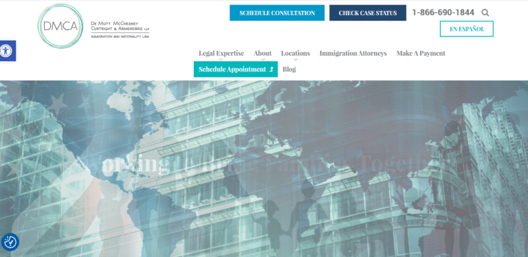 - Short Summary of Immigration Services: As one of Texas’s oldest immigration firms, DMCA has a long-standing reputation for excellence. With offices in San Antonio and Austin, their team includes numerous Board-Certified specialists who can handle any immigration issue, from business visas to family petitions. For over 40 years, they’ve been a trusted, ethical, and reliable choice, earning a 5-star rating.