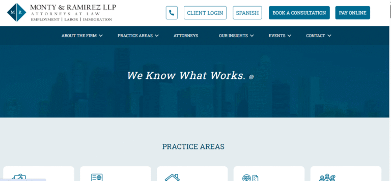 - Short Summary of Immigration Services: Monty & Ramirez LLP in Houston offers a unique combination of immigration and employment law They are specialists in I-9 compliance and E-Verify, making them a vital resource for Texas businesses that want to avoid government audits. Their bilingual team and 4.8-star rating make them a top choice for employers needing comprehensive legal protection.