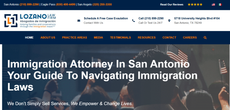 - Short Summary of Immigration Services: With offices in San Antonio and Eagle Pass, The Lozano Law Firm offers expert legal help for families and individuals in South Texas. They understand the unique challenges of the border region and provide strong deportation defense and family visa services. Their excellent 9-star rating from over 300 reviews highlights their commitment to their clients.